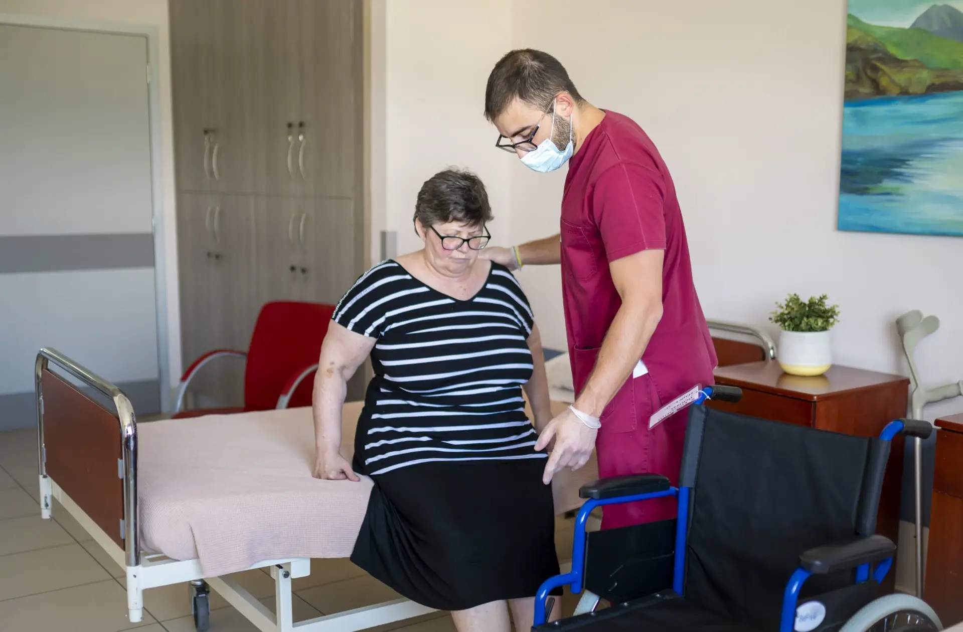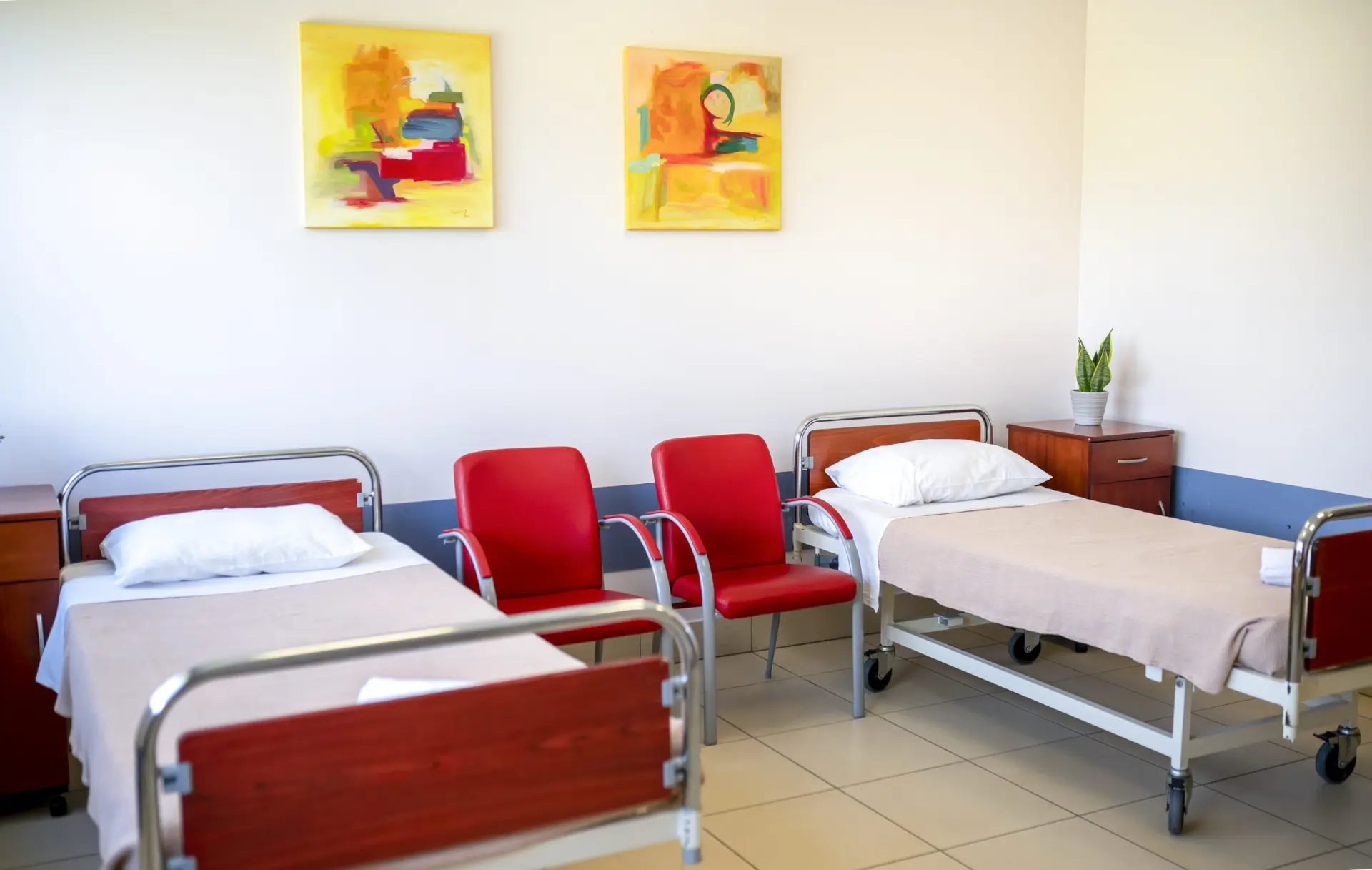 Οι θάλαμοι νοσηλείας είναι διατεταγμένοι σε έξι εξειδικευμένες νοσηλευτικές μονάδες, με εξαιρετικό φυσικό φωτισμό και αερισμό. Το μέγεθος των εγκαταστάσεων καθιστά δυνατό το διαχωρισμό και την κατηγοριοποίηση των νοσηλευτικών μονάδων, γεγονός που ενισχύει την ασφαλή, εύκολη και ήρεμη διαβίωση των φιλοξενούμενων. Ακόμη, οι δώδεκα θάλαμοι αυξημένης παρακολούθησης εξασφαλίζουν υψηλό επίπεδο φροντίδας, καθώς υπόκεινται σε εικοσιτετράωρη παρακολούθηση από το νοσηλευτικό και ιατρικό προσωπικό με ταυτόχρονη εποπτεία μέσω καμερών.