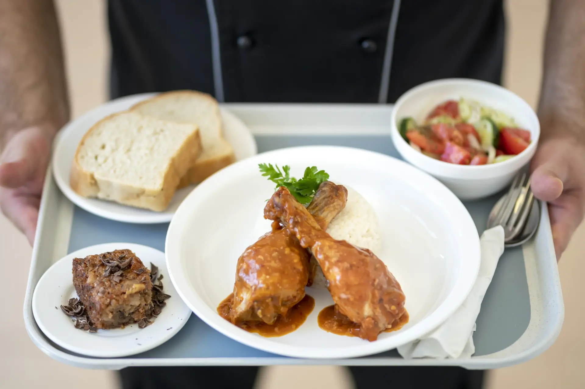 Η παρασκευή των γευμάτων γίνεται στον ειδικά εξοπλισμένο και υγειονομικά ελεγμένο χώρο του εστιατορίου, με όλες τις σύγχρονες απαιτήσεις.